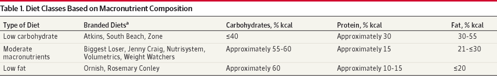 Le diete sono state suddivise in base agli approcci che proponevano circa i quantitativi di macronutrienti da assumere giornalmente (vedere figura sotto).