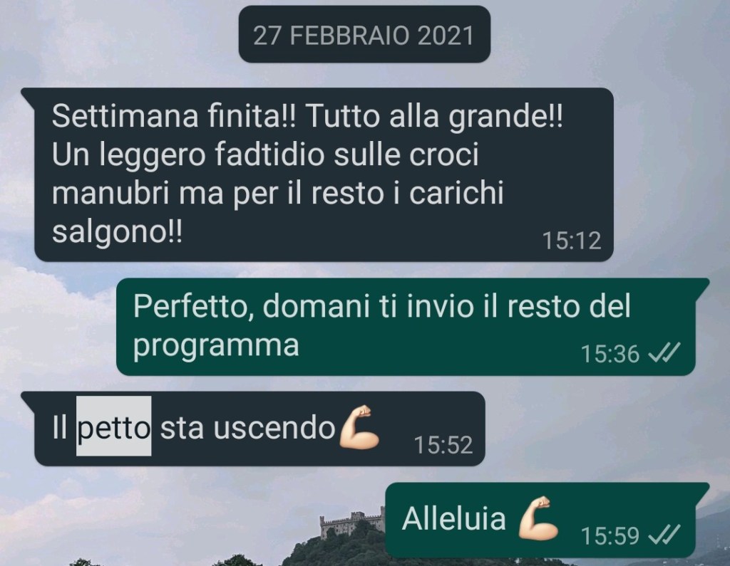 Dopo qualche mese passai finalmente ad eseguire alcune trazioni prone di fila ed i programmi iniziarono ad essere più simili a ciò che riporterò ora qui sotto…