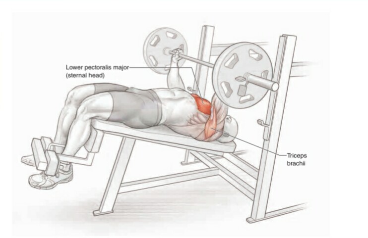 Distensioni su panca declinata: ottimo esercizio per reclutare tutte le fibre dei muscoli pettorali, è l’esercizio in cui generalmente si carica di più, garantisce quindi un’elevata tensione meccanica nei nostri allenamenti (fattore chiave dell’ipertrofia muscolare).
